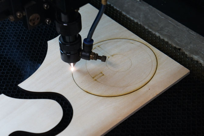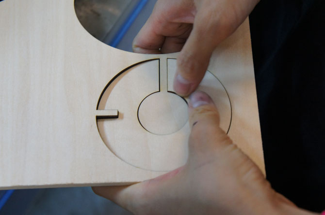經過電腦畫圖,就可以輸入鐳射切割機替木材塑形。