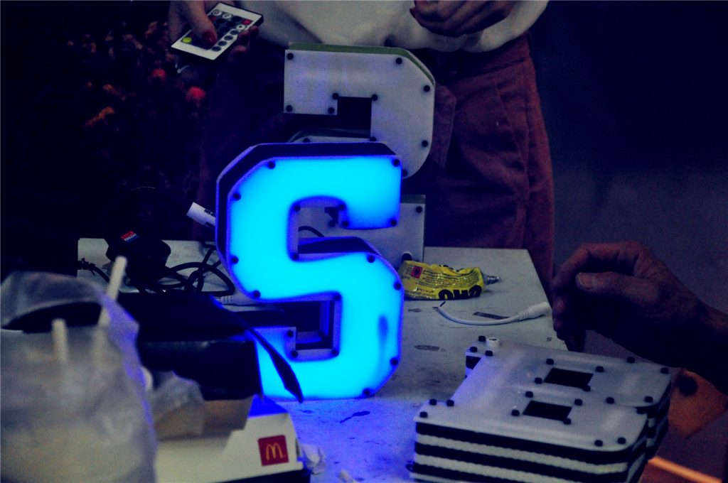 為Chanel員工舉辦活動,自選 A – Z 其中一個字母,拼合有機玻璃外罩,使用遙控,轉換數十種變色效果, 令家居盡顯風格 !