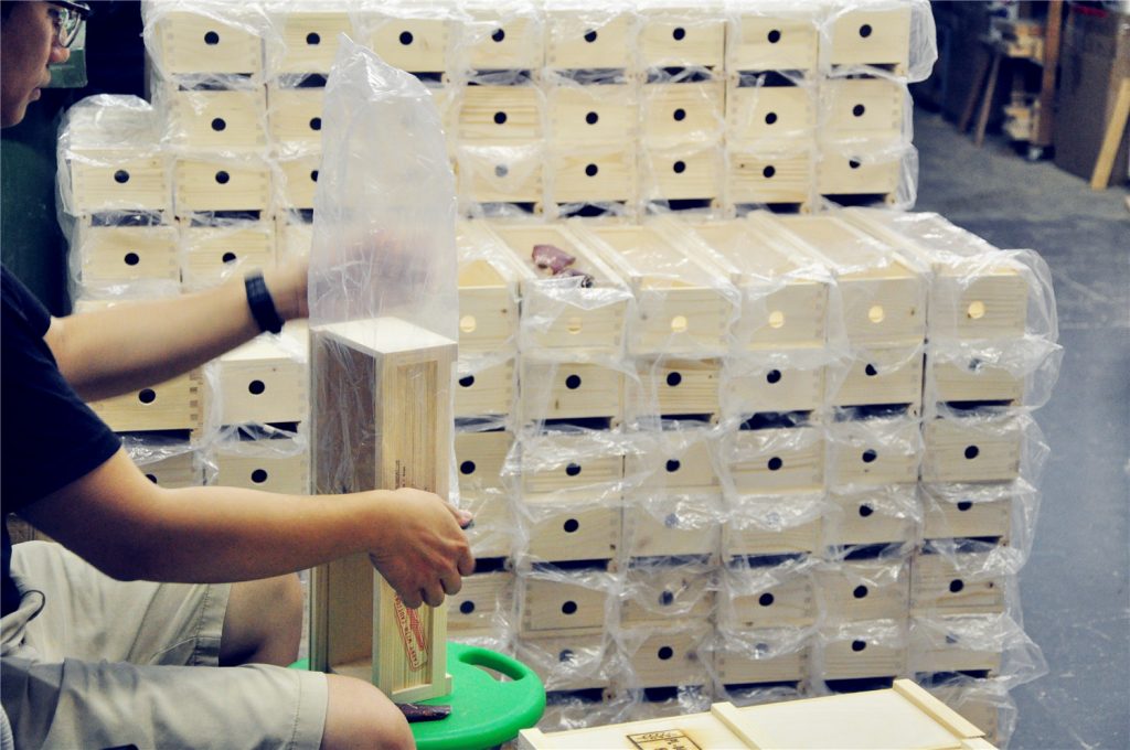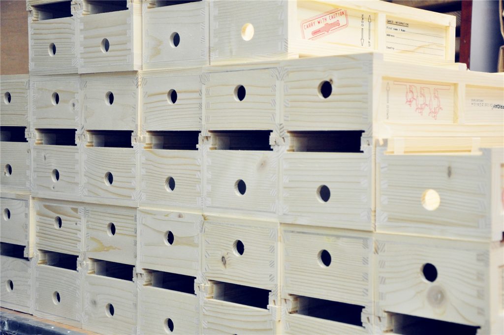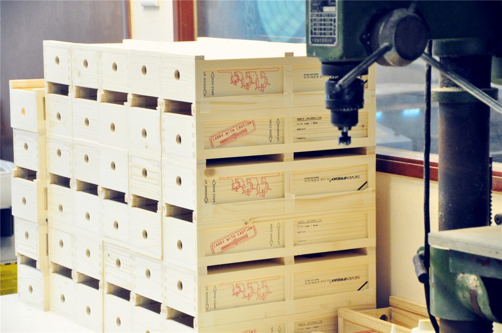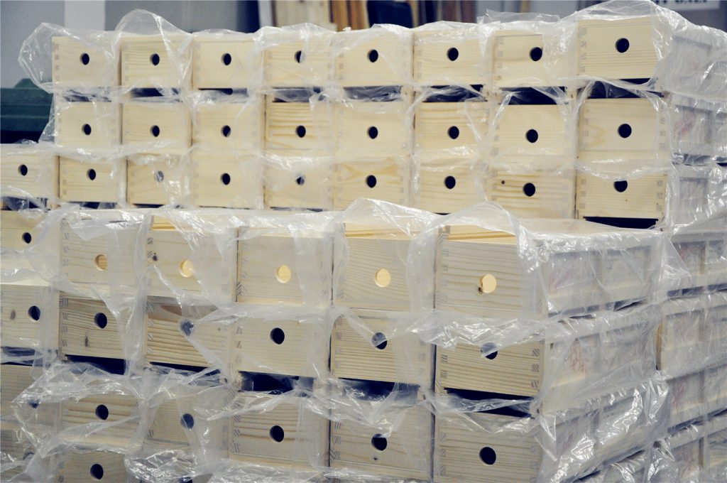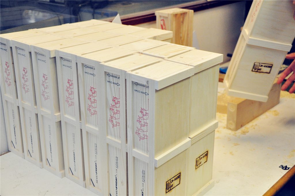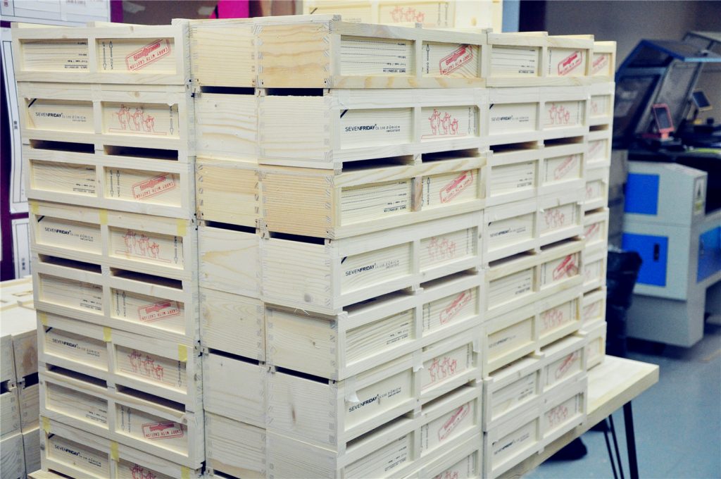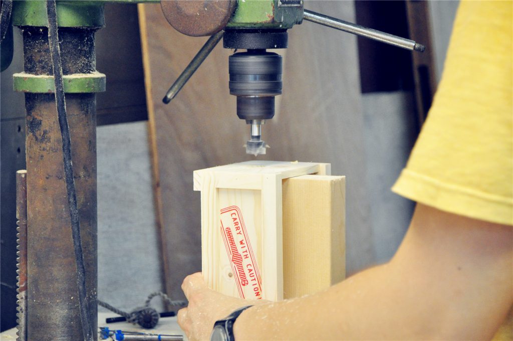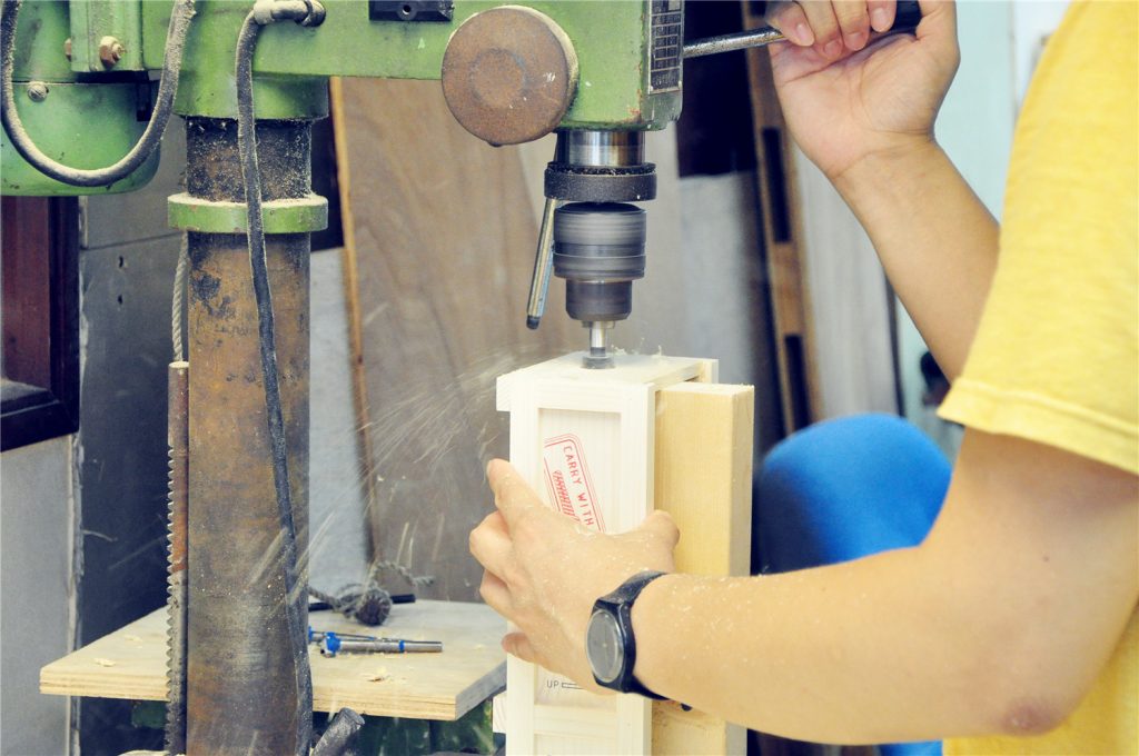 為一手錶品牌木製包裝盒加工鑽孔,數量1000 個。